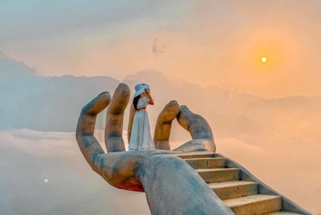 • 14h30: We depart for Moana Sapa View. This artistic complex is located just 500m from the Stone Church and offers seven iconic check-in spots: Bali Heaven Gate, Giant Girl Statue, Golden Hand, Infinite Lake, Lonely Tree, Swing, and the Artistic Cafe. The backdrop is the majestic Hoang Lien Son range.